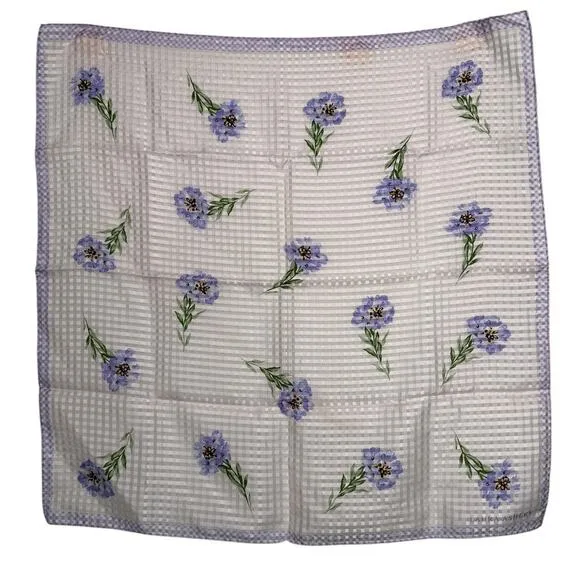 So lovely vintage Laura Ashley 100% silk floral check square scarf! Rolled edges. Looks great on your handbag •Size: 21 x 21" •Condition: Excellent vintage – like new, barely/never used •Color: lavender violet purple green yellow brown Bundle for combined shipping! Pictures/video are part of the description. Measurements are approximate and for guidance. Color may vary by screen. Sizes vary between designers. ALL preowned items can be expected to show normal signs of wear. Smoke free, DOG FRIENDLY home. 10% of net sales go directly to charity at my local food bank. tags: spring summer vintage retro 90s preppy tennis prep country club garden party polo romantic flirty feminine girlie girly soft girl coquette elegant timeless chic sophisticated classic classy cottage style cottagecore grandmillennial coastal shabby chic easter church baby shower brunch interview