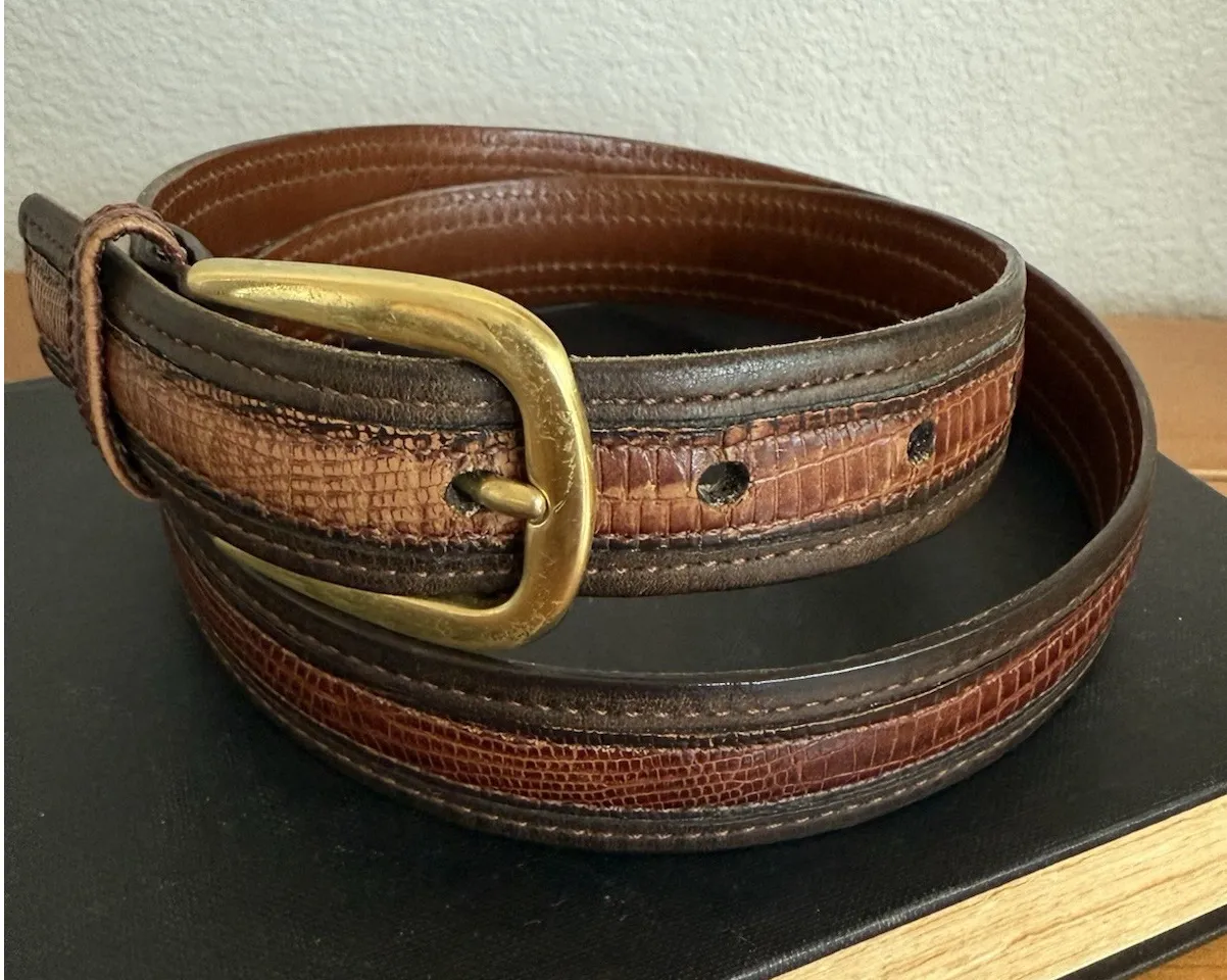 Vintage Leather Belt Iguana Grain Steerhide Brass Buckle Made In‎ USA Size S/M Brown - $30 - From Megan