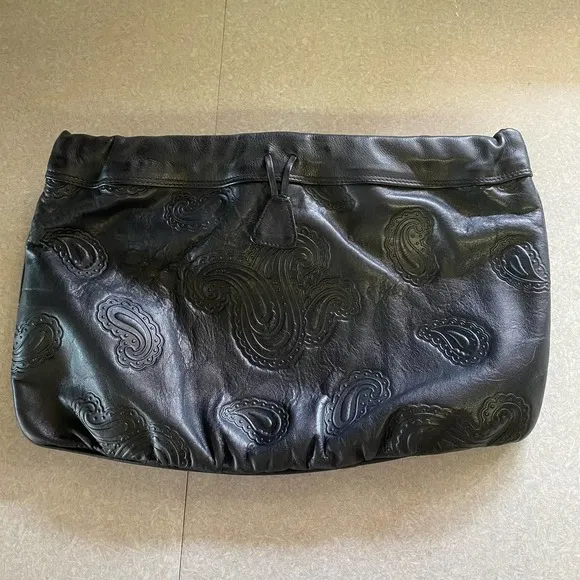 Vintage Leather Large Coastal Cowgirl Western Minimalist Paisley Makeup Clutch Black - $36 - From Rachel
