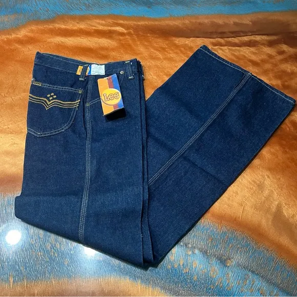 Vintage Lee Denim Bell Bottoms Flare leg jeans 70s New with original tags Size 28 long Made in US... Show more