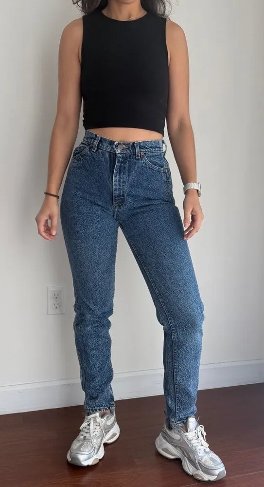 Gorgeous pair of vintage jeans from LEE in a beautiful dark acid wash High waist fit, slim trough... Show more