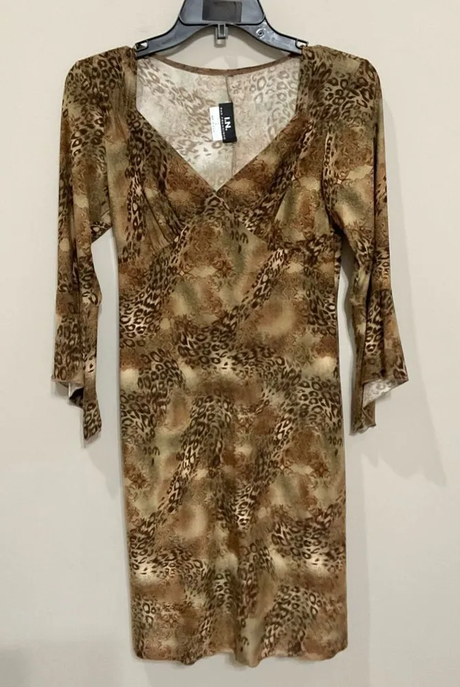 Vintage Leopard Print Bodycon Mini Dress Sz S Sweetheart Neckline 3/4 Sleeve USA Brown - $35 - From Trail City
