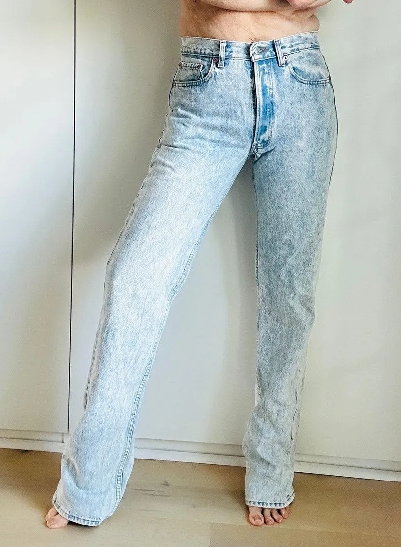 Vintage 50 Acid Wash Denim Jeans Made USA Size 30 x 35 Light Wash Straight Modern Fit Measurements... Show more