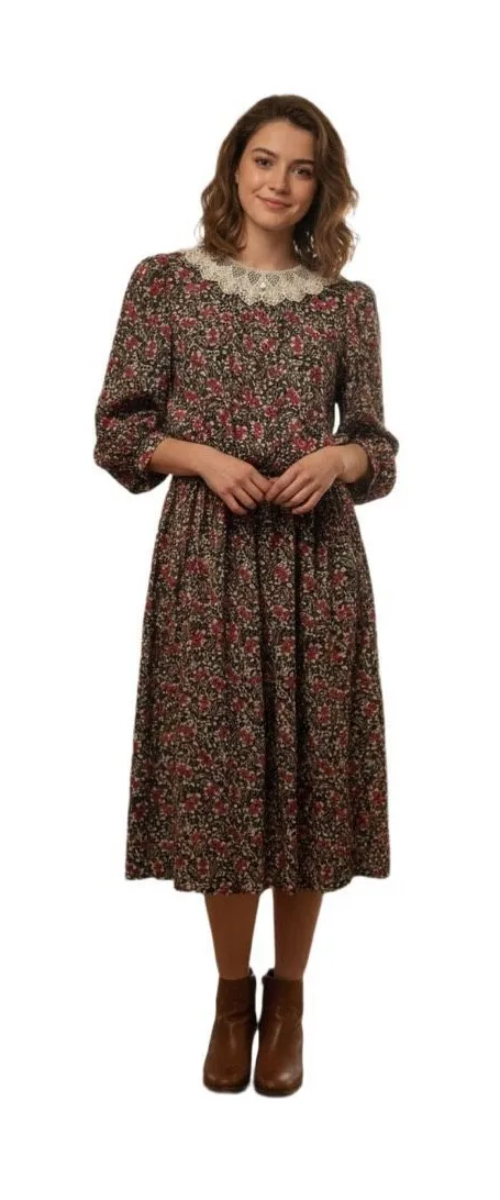 Vintage Lisa II floral dress lace collar size 14 runs small padded shoulders Red - $21 - From Marie
