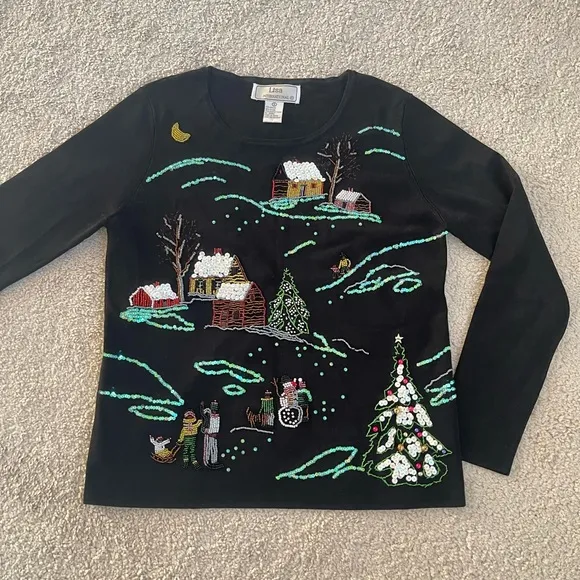 Vintage Lisa International Holiday Christmas Embellished Sweater - S Black - $53 - From Sandra