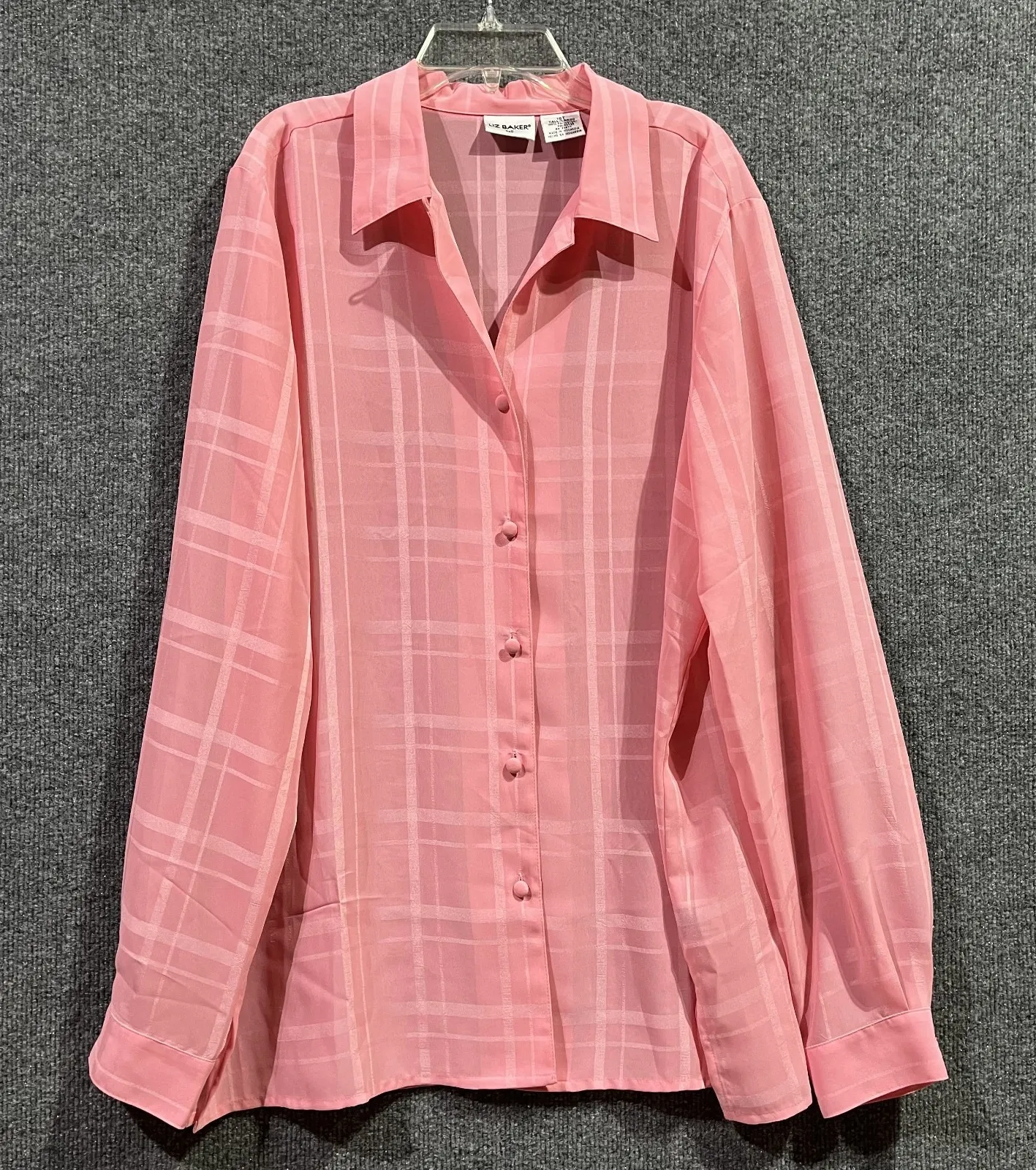 Description Vintage Liz Baker Shirt Womens 16 Pink Semi Sheer Windowpane Button Up Retro. Product... Show more