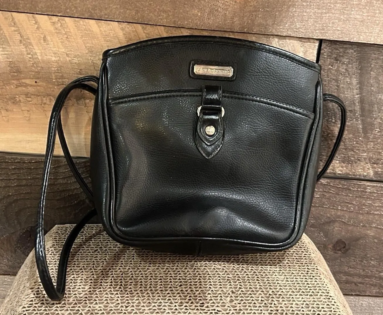 This Vintage Liz Claiborne Purse in Black Faux Leather is a stylish square-shaped bag with a zip clo... Show more
