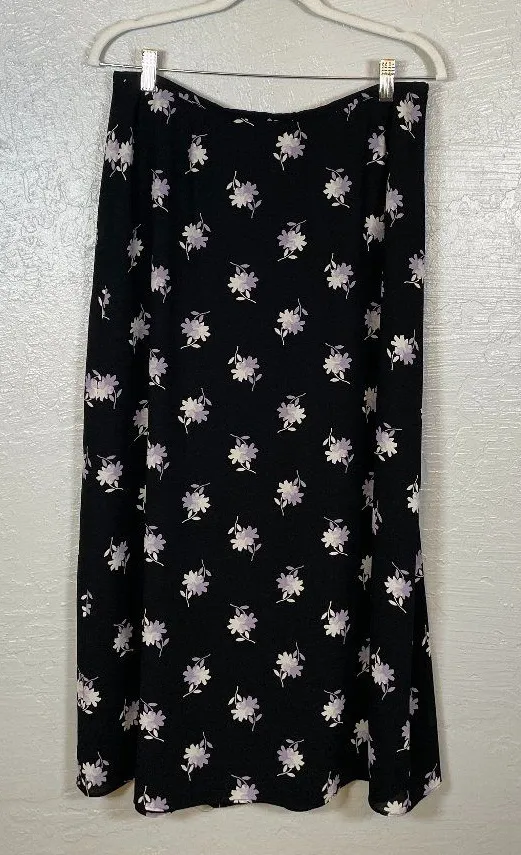 Vintage Liz Claiborne Women Petite 14P Black maxi skirt with White and Purple Floral pattern Line... Show more