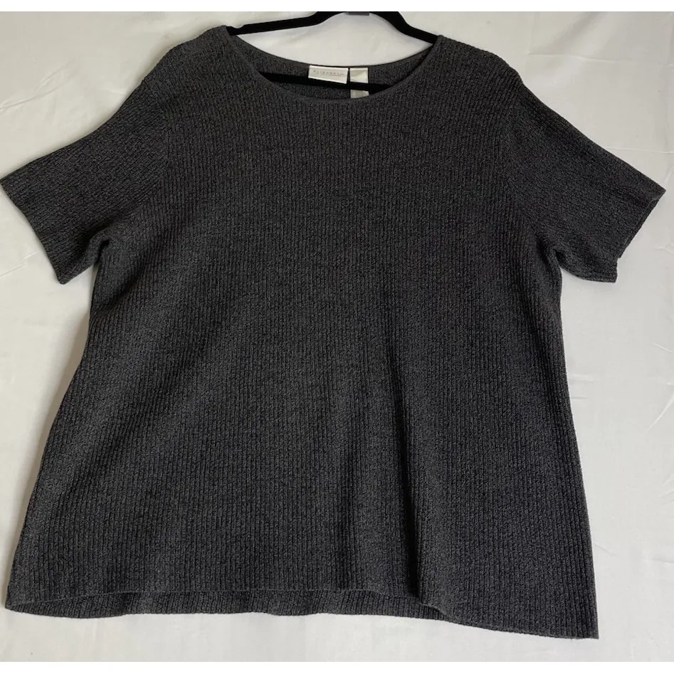 Vintage‎ Liz Claiborne Womens 1X Grey Ribbed Sweater Top Short Sleeve Preppy Gray - $25 - From Andrea