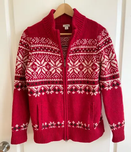 Vintage LL Bean 100% Lambs Wool Zip Up Fair Isle Nordic Sweater Red Sz M Size M - $45 - From Yosh