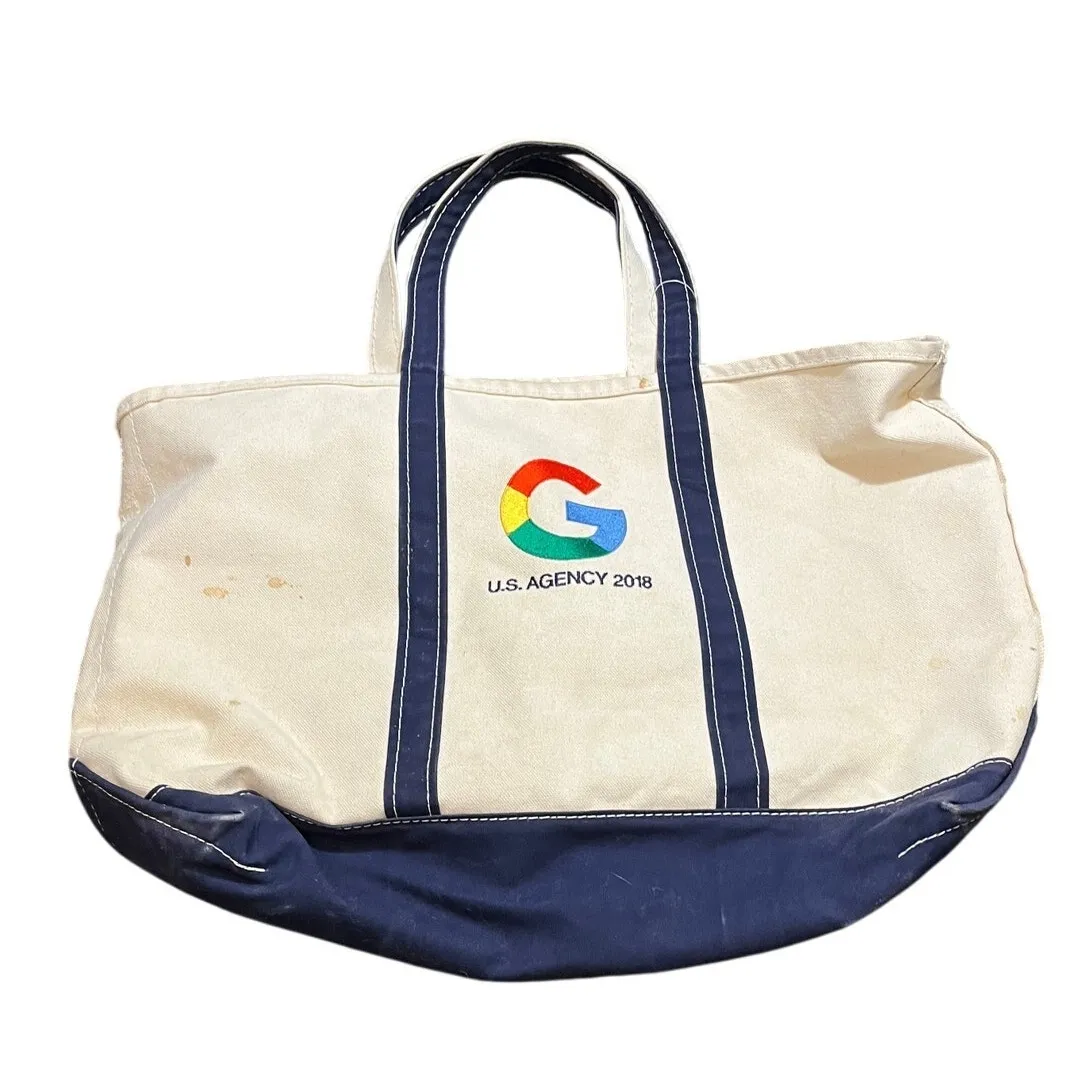 Vintage LL Bean Boat & Tote Bag Natural & Navy Trim Canvas Google Large‎ - $99 - From Sophie