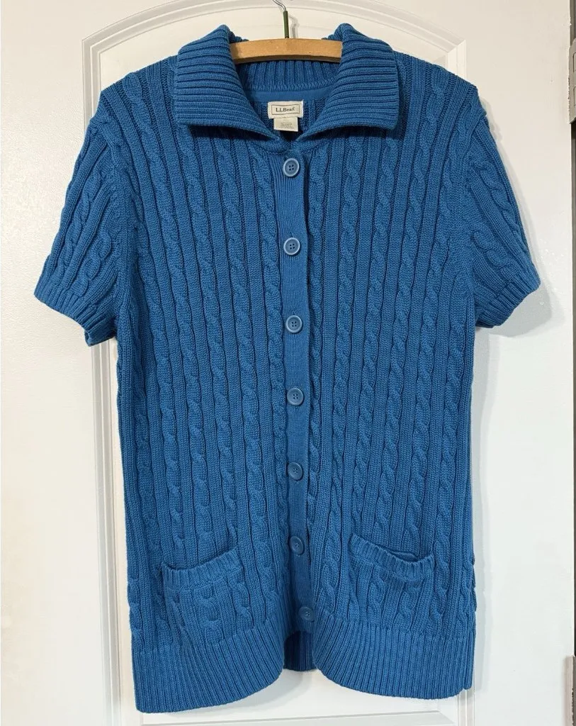This vintage LL Bean cable knit cardigan brings together classic craftsmanship and early‑2000s style. Made from soft, breathable cotton in a rich blue‑teal tone, this short‑sleeve button‑front sweater is perfect for layering or wearing on its own. The cable knit texture adds timeless charm, while the Y2K silhouette gives it a trendy, nostalgic feel. Ideal for casual outfits, cottagecore looks, or anyone who loves high‑quality LL Bean knitwear. FEATURES * Brand: LL Bean * Style: Cable Knit Cardigan * Sleeve Length: Short sleeve * Closure: Button‑front * Material: 100% cotton * Color: Blue / Teal * Size: Women’s XL * Era: Y2K / early 2000s * Fit: Relaxed, comfortable knit CONDITION * Excellent pre‑owned condition with minimal wear * No holes, stains, or loose threads * Buttons intact and secure Items are pre-owned and sold as-is unless stated otherwise. Please review all photos carefully—the item pictured is the exact one you will receive. I strive to provide accurate descriptions and highlight any notable flaws or wear, but please keep in mind that vintage and used items may show signs of age or previous use. 🛑 Smoke-Free Home All items come from a clean, smoke-free environment. If you have any questions or need additional photos before purchasing, feel free to reach out. I’m happy to help ensure you’re confident in your purchase!