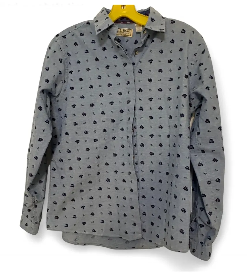 Vintage LL Bean Women’s Floral Patterned Blue Button Up Shirt Sz 10 100% Cotton - $21 - From kj