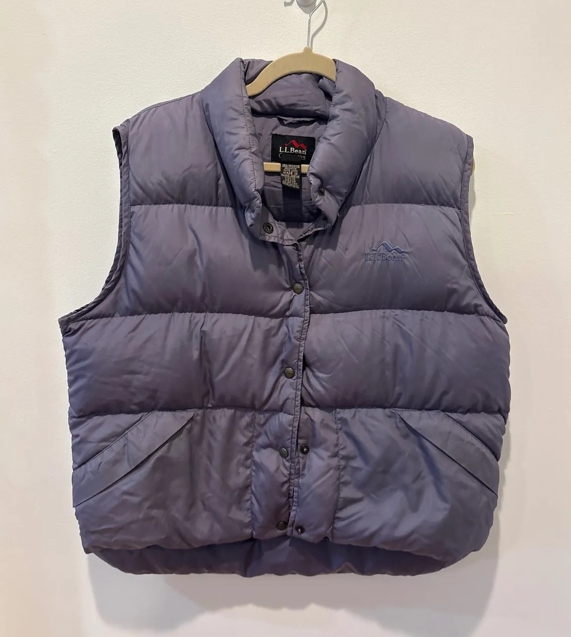 LLBean Outdoors puffer vest in a beautiful purple hue. This sleeveless vest features a full-zip clos... Show more