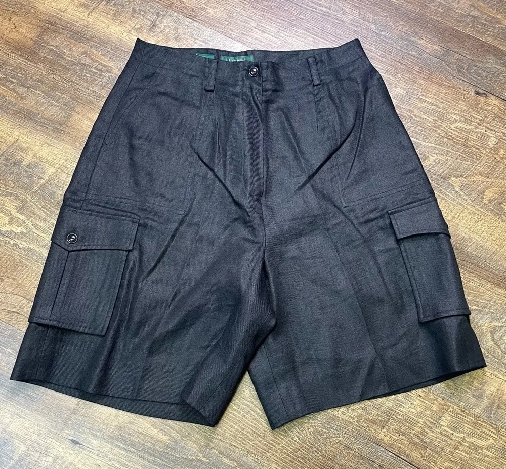 Vintage Y2K LRL Lauren Ralph Lauren 100% Linen Women's Size 10 Black Cargo Pockets Shorts Wrinkl... Show more