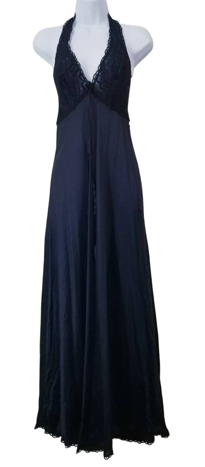 Lucas Black Lace Slip Night Gown Halter Neckline V-neck Gorgeous vintage Lucas black lace slip night gown. This stunning piece features a delicate halter neckline and a flattering V-neck design. Perfect for adding a touch of elegance to your sleepwear collection or for a special occasion. You'll feel amazing wearing this! Features: - Brand: Lucas -size tag 12 but fits like SMALL -Size: Please refer to measurements for accurate fit. -In excellent condition and comes from a smoke-free home. - Color: Black - Material: Lace, satin - Style: Slip, Night Gown - Neckline: Halter, V-neck - Vintage item Thanks for stopping by and checking out my Closet. Please Checkout My Other Listings.