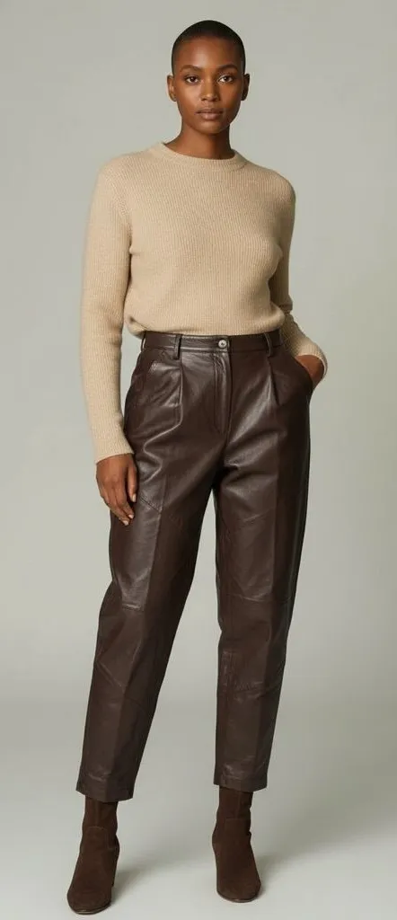Vintage Madeline 100% Leather Brown Triple Pleated High Waist Trouser, Tagged Size 36 (EU) 8 (UK). T... Show more