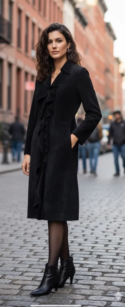 Vintage Margaret‎ Godfrey Suede Ruffle Coat Long Maxi Duster Festival Boho 4 Black - $200 - From Tiffany