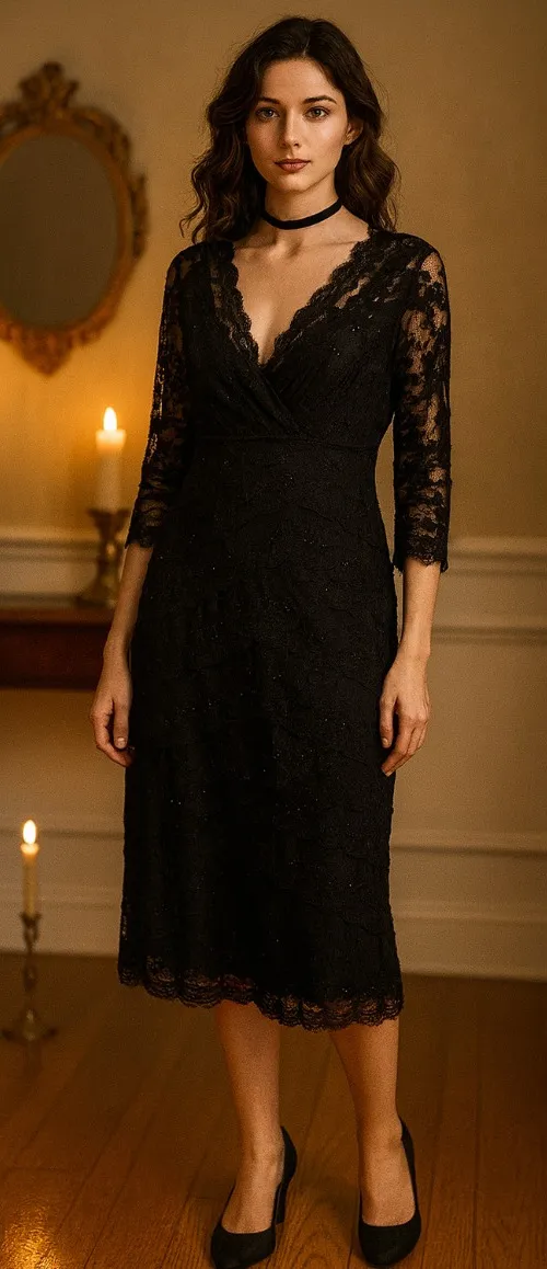 The Vintage Marina Dress is a whimsical and festive piece perfect for a woman size 8. This black lac... Show more