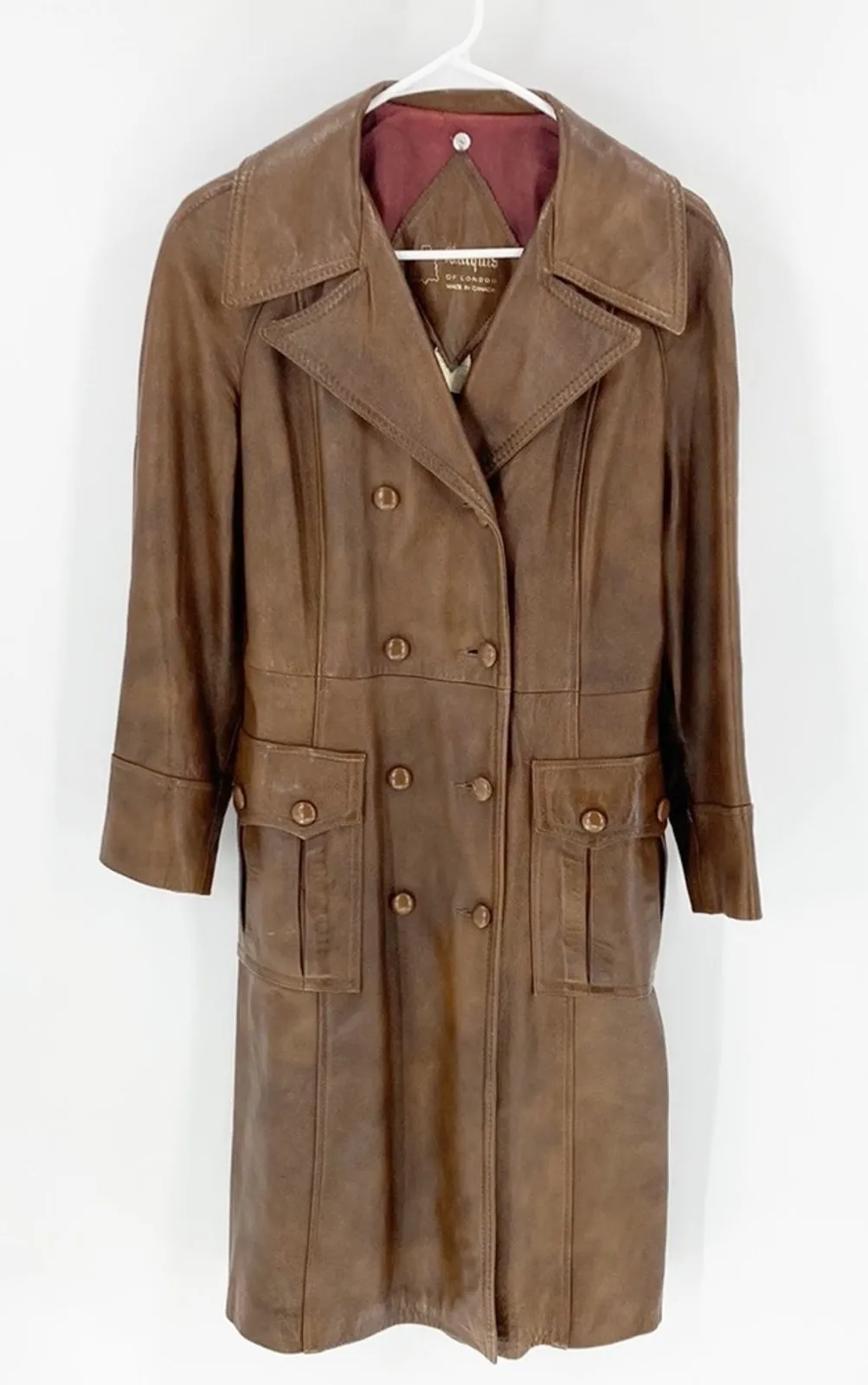 Vintage Marquis of London faux Leather Trench Coat Wing Collar size L mob 70s Brown Size L - $150 - From Krystal