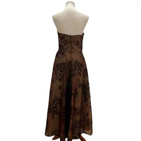 Classic. ULTRA Rare. Stunning Vintage Scott McClintock strapless evening gown. 90s Y2k does 50s Features: -Midi length / tea length (on most) -Black (slightly sparkly glitter) organza (toile-like) paisley / floral, embroidered velvet overlay. -Metallic (pink red orange gold silver) iridescent base layer (beautiful under light) -Full skirt -Zip / hook & eye closure -Boning in bodice for a flattering fit -lined -Made in the USA / America Good preowned vintage condition, with normal signs of wear throughout (consistent with age including some wrinkles, creases ,minor blemishes and slight color variations to underlay). None of this detracts from the beauty of this piece. Truly a breathtaking gown! Pictured clipped on mannequin torso, unclipped and flat lay. -Tag labeled Vintage Size 10. Listed as approximately a Medium in today's sizing. *Please see approximate measurements in photos, and compare them to your own (or a garment that you have) before purchasing. Tag: party Prom Winter Formal Mardi Gras Spring Fling Dance Cruise bridesmaid maid of honor formal dress your best #Whimsigoth #y2k #fairycore prom Gala Ball dance Summer formal vacation Birthday Quincinera Promspecial occasion, event, wedding guest bridesmaid maid of honor black tie event avant- garde 1990s, 2000s, corset, fairy core, fairytale, ball gown, black tie, shimmery Summer date night, cruise formal, Gala, Ball, night out bridesmaid, formal concerts or awards ceremonies, dancing Old Money Ball gown