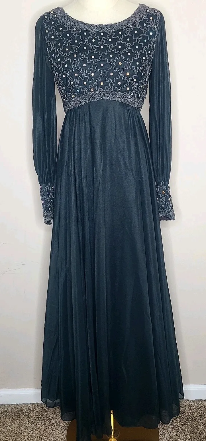 Vintage Mike Benet Formals Beaded Rhinestone Empire Waist Black Gown Size 8 Good vintage condition.... Show more