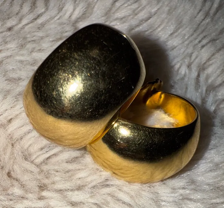 Vintage Monet Goldtone Metal‎ Hoop Clip On Earrings Chunky Wide Gold - $41 - From ivette