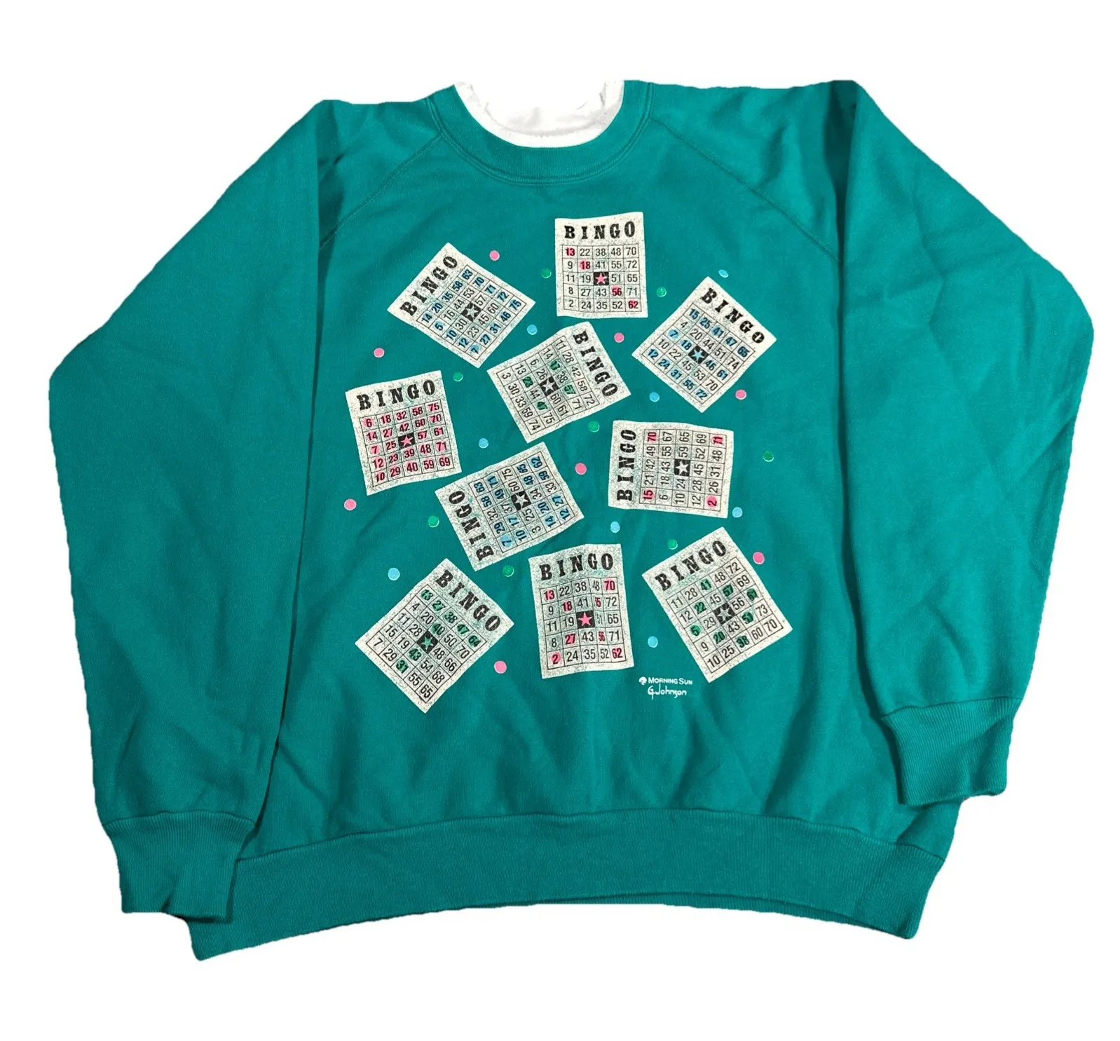 Vintage Morning Sun 80s Teal Bingo Granny Sweatshirt SZ XL Retro Classic USA - $35 - From Molly