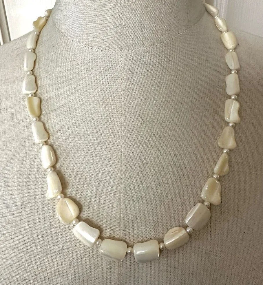 Vintage mother of pearl long beaded necklace Timeless and classic Twist clasp So beautif... Show more