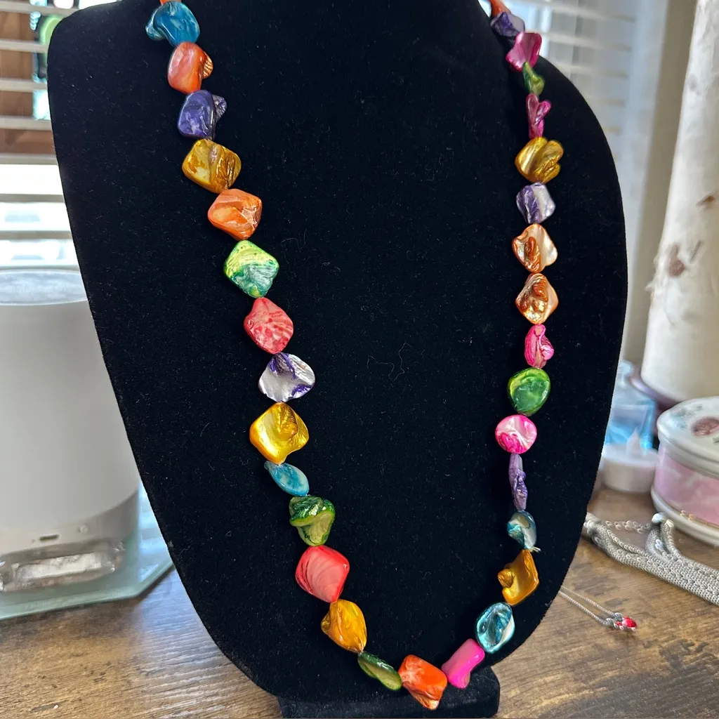 VINTAGE Mother of Pearl Multicolor Bracelet and Necklace Set Blue - $35 - From Kitty