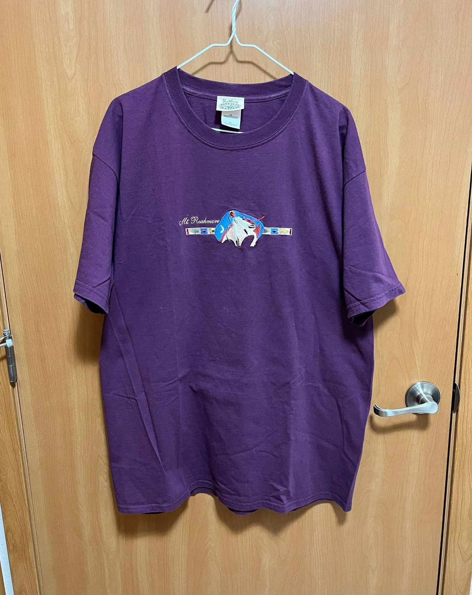 Vintage and gently used, oversized Fred Harvey Mount Rushmore Tee - XL. Beautiful indigenous design with a bison and eagle feathers. Vibrant, but subtle purple color. Does come from a home with pets.