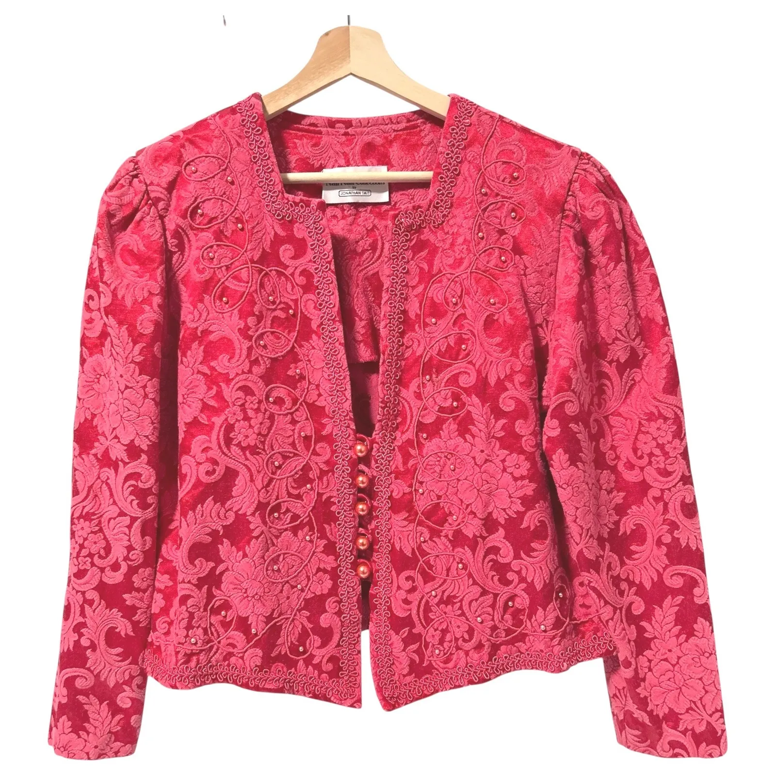 Nah Nah Collections by Jonathan Tait cropped jacket in a striking red and pink brocade. This elegant... Show more