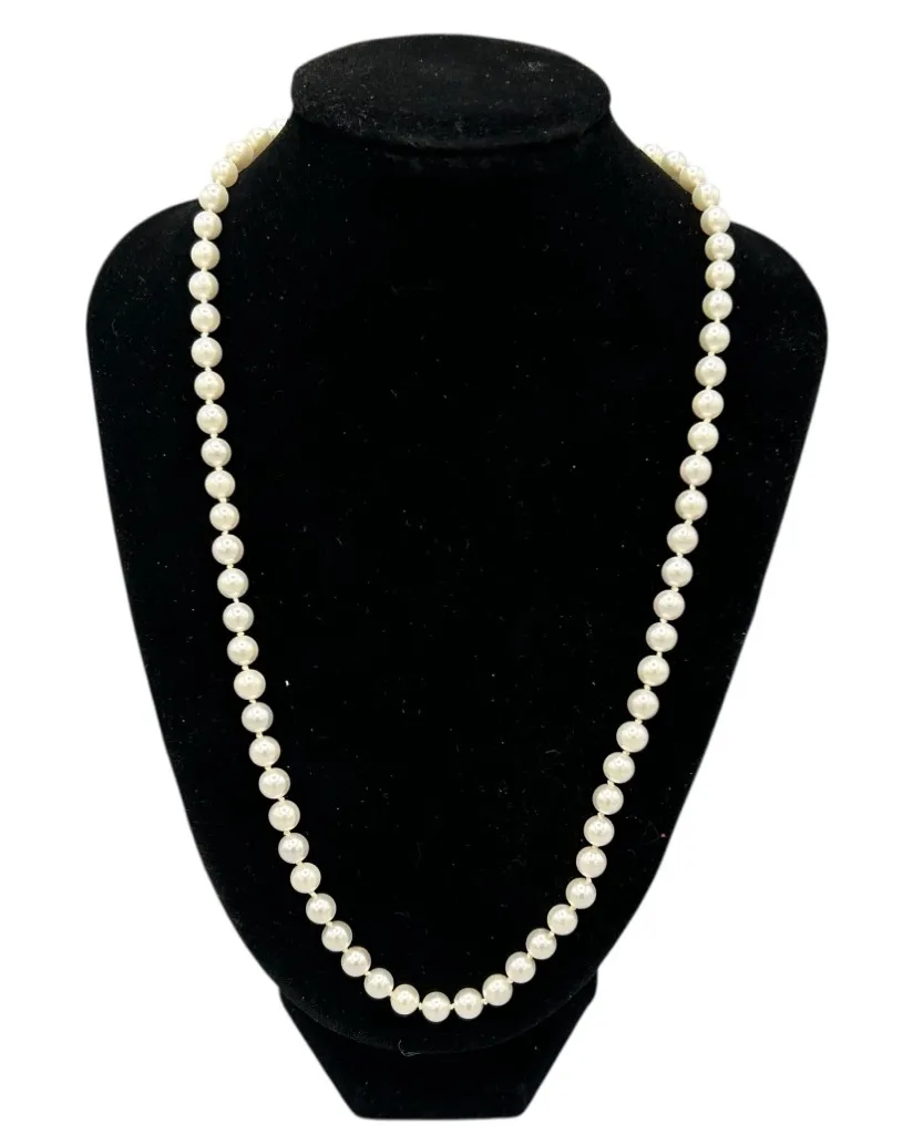 Vintage faux pearl necklace with a decorative floral box clasp marked Neumann Metall. Beautiful mid-century European design with individually knotted, non-magnetic faux pearls and a gold-tone floral rosette clasp with crystal accents. The clasp shows magnetic response, which is normal for vintage costume jewelry. Pearls are not magnetic. ✨ Classic vintage elegance ✨ Bridal, evening, or dressy styling ✨ German / European costume jewelry A timeless vintage pearl necklace with standout detail. ⸻ • vintage pearl necklace • faux pearl jewelry • Neumann Metall • German costume jewelry • floral box clasp • bridal pearls • mid century jewelry • classic pearl strand • vintage European jewelry