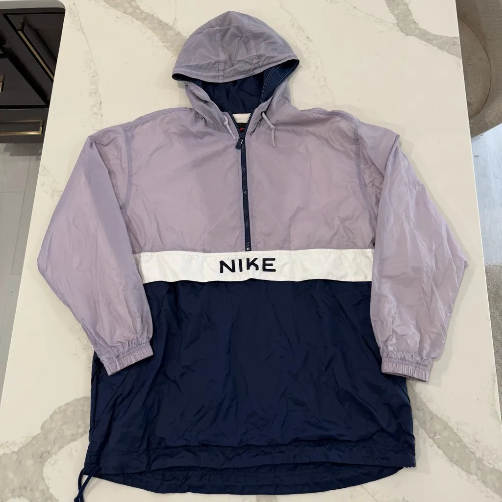Vintage Nike 1/2 Zip Pullover Hooded Windbreaker Jacket Women’s Size XL Purple/Blue Anorak - Large... Show more