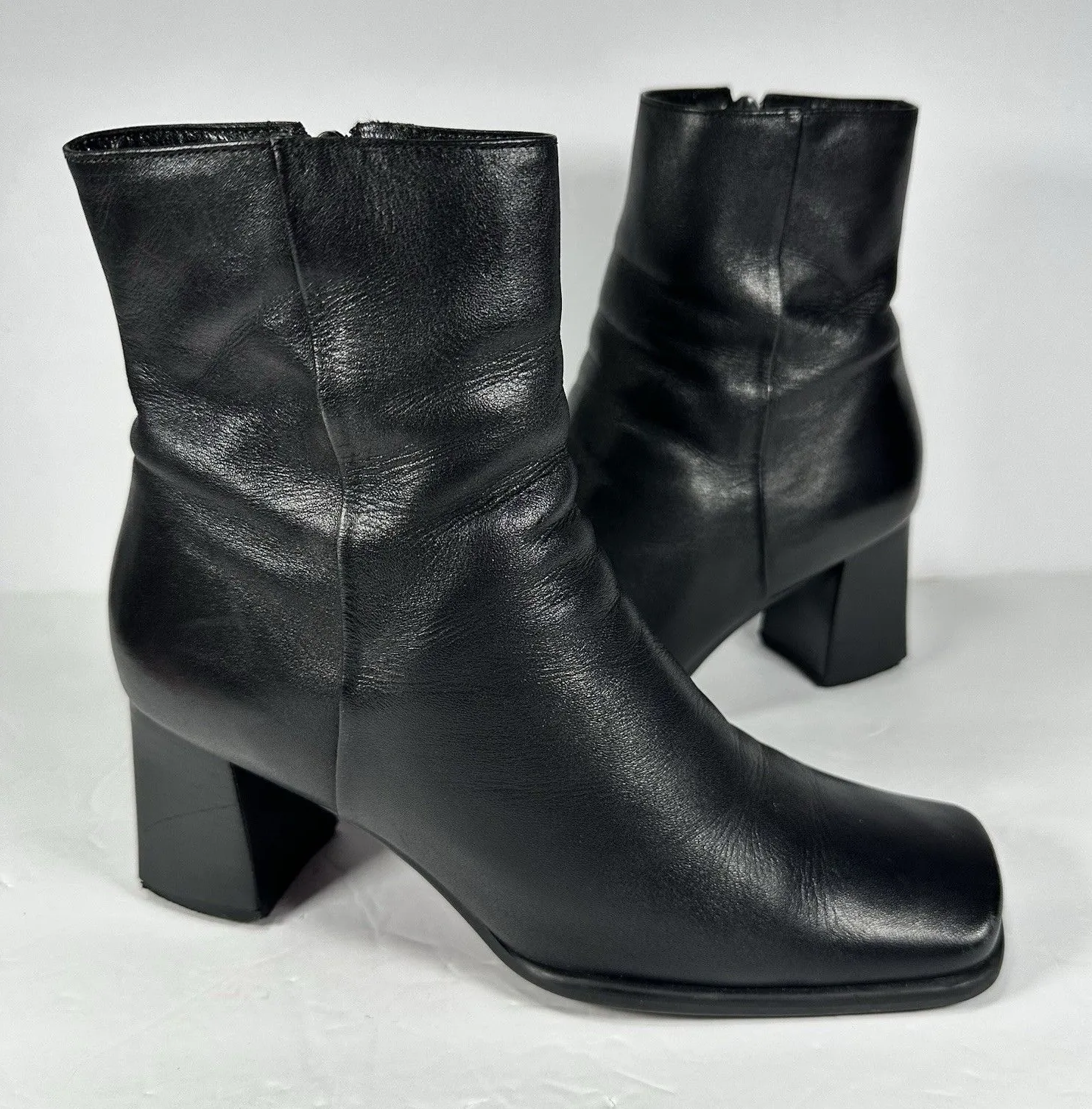 Item Specifics Brand: Nine West Style: Ankle Boot Color: Black Upper Material: Leather Heel Sty... Show more