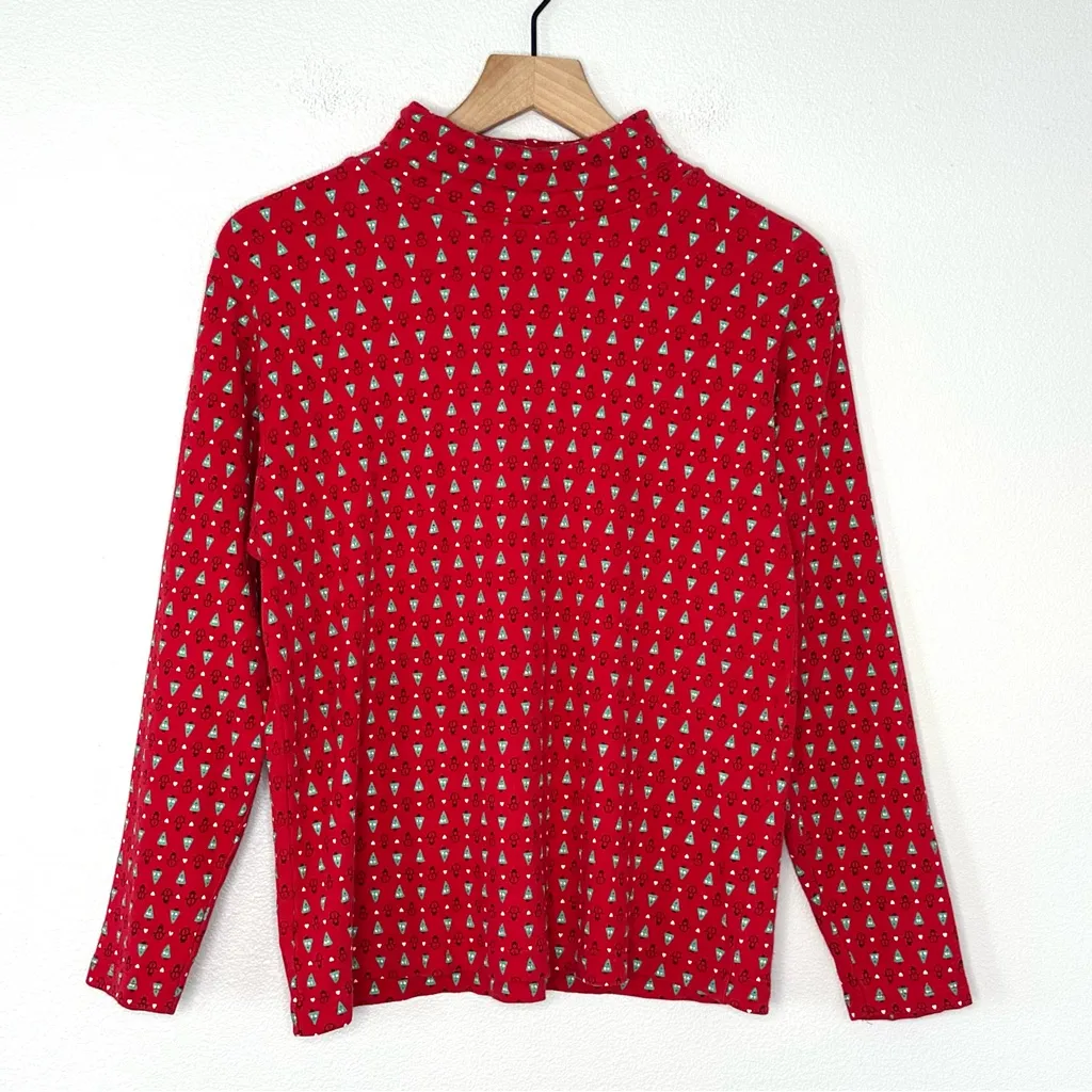 Such a cute vintage holiday turtleneck. It is 100% cotton and has a prink of christmas trees, snowm... Show more