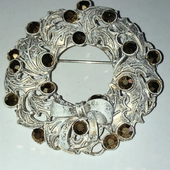 Vintage Off White & Gold Tone Shimmer CZ Round Rhinestone Brooch Shoulder Pin - $30 - From Vault