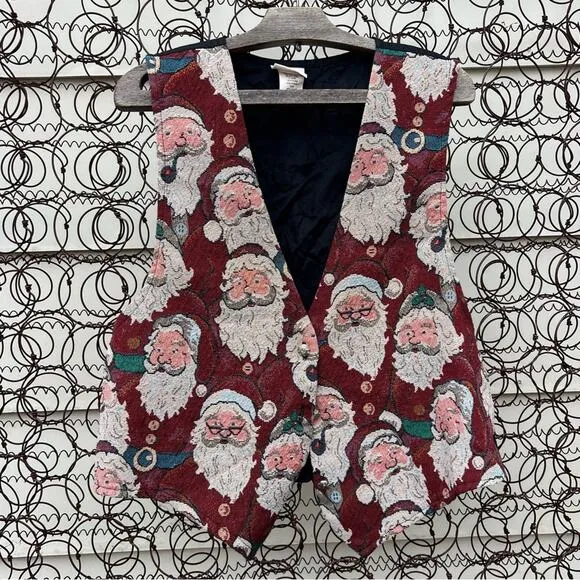 Vintage Old World Santa Tapestry Ugly Christmas Dress Vest Backroad Blues Brand MADE IN USA Size X-LARGE Flat measurements are approximate pit to pit 21 inches length down center of back 21 inches waist 21 1/2 inches