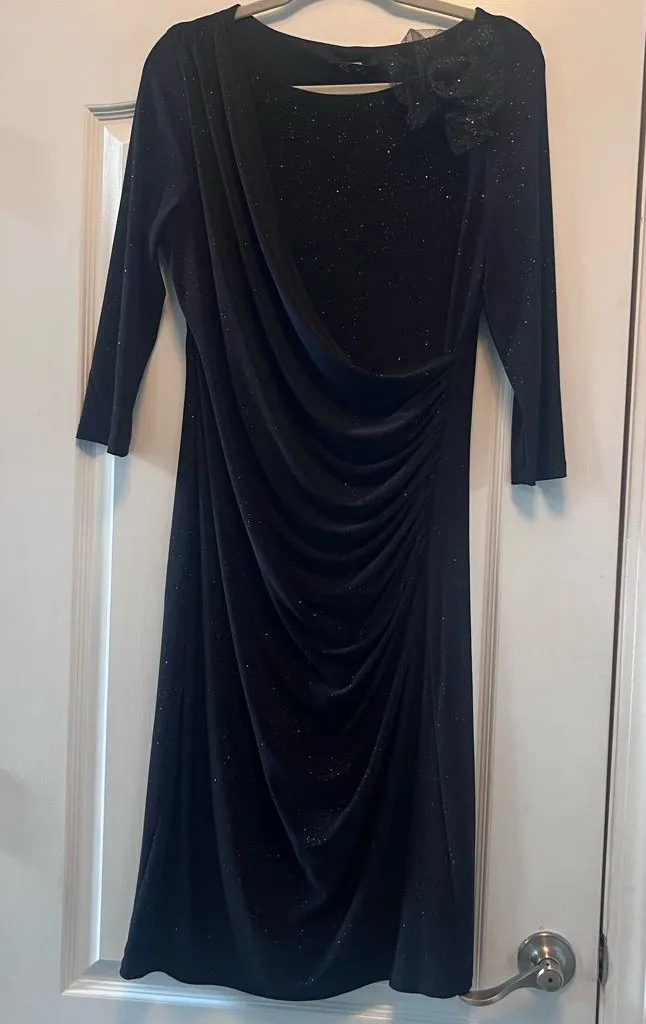 Vintage Onyx Nite Black Long Sleeve Dress with Flower Detail Size 10 - $30 - From Stephanie