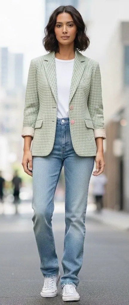 Brand: Orvis River Road Description: Womens Green White Houndstooth Blazer Jacket Size: Womens Siz... Show more
