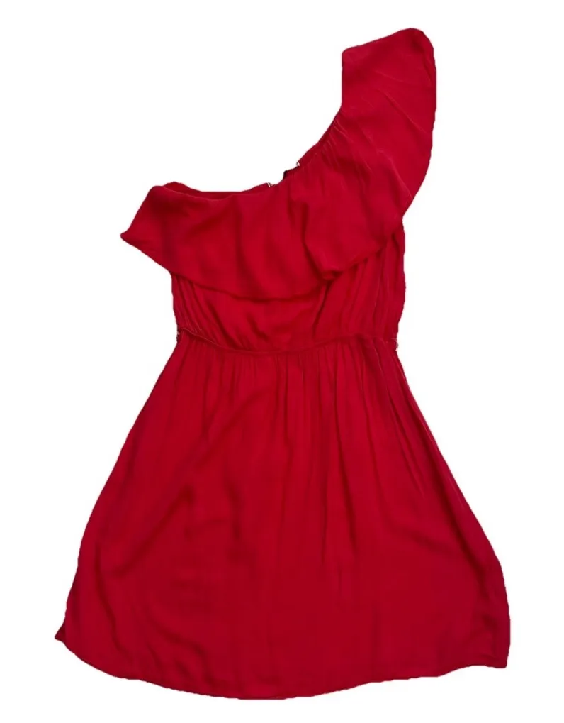 Vintage Papaya Women’s One Shoulder Mini Dress S Ruffle Neckline Flirty Feminine Good Pre-Owned Con... Show more