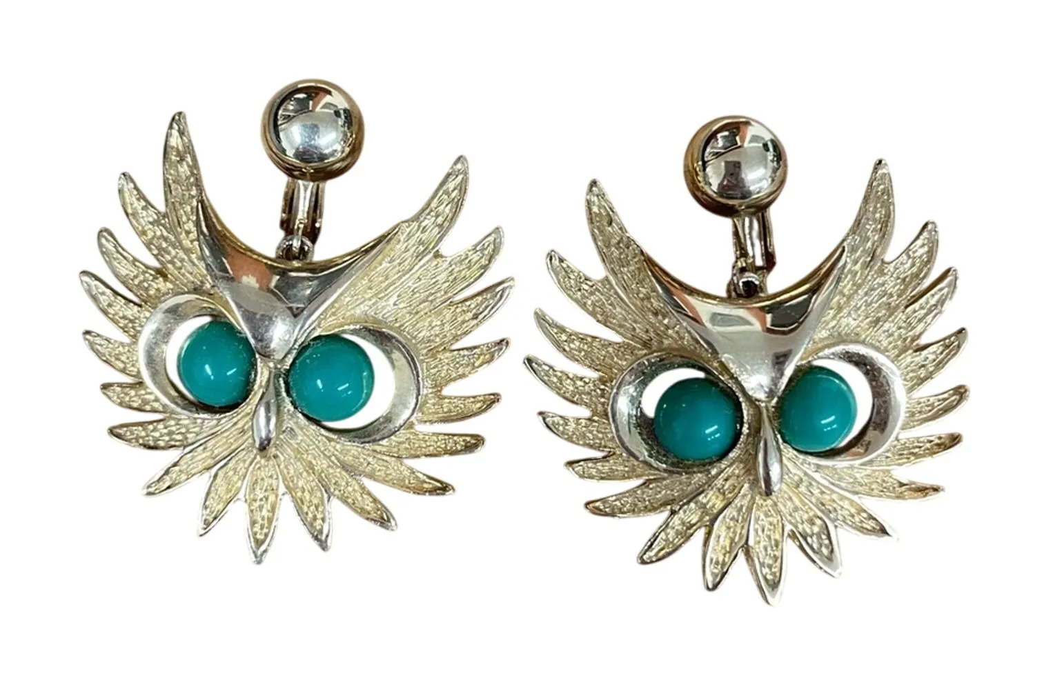 Vintage Park Lane Gold Tone Owl Clip On Earrings Green Eyes - $39 - From Lisa