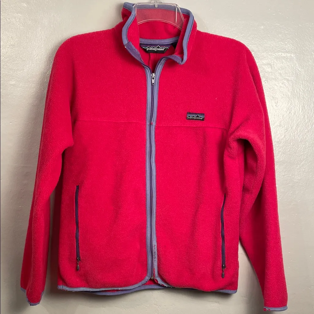 Vintage Patagonia Full Zip Fleece Jacket Made In USA Red Fleece Blue trim Size med Pre-owned cond... Show more