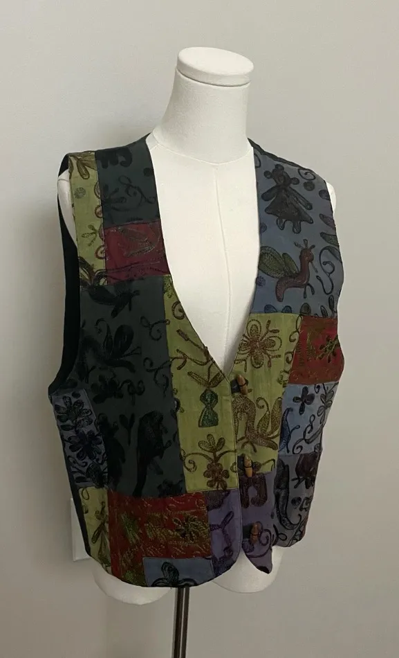 Vintage Xtend Urban Wear Vest. One of a kind embroidered art to wear patchwork piece. Flowers. Birds... Show more