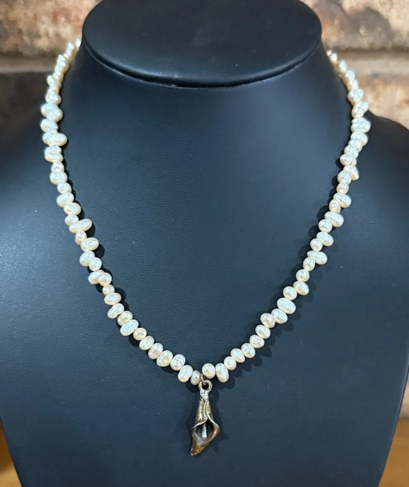 Vintage pearl necklace with Sterling silver 925 Calia Lily Pendant White - $58 - From Tammy