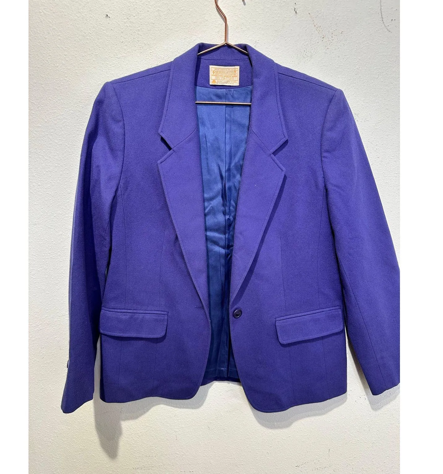 Features: Brand: Pendleton Type: Jacket Size: 12 Color: Purple Material: Virgin Wool Long Sleeves Button Front Blazer Jacket Made In United States Dry Clean Only This vintage Pendleton blazer jacket is a classic wardrobe staple, crafted from pure virgin wool for premium warmth and durability. Designed in a rich purple shade, it features a traditional button-front closure with a tailored silhouette that exudes timeless sophistication. The structured cut highlights its refined style, while the quality wool fabric ensures comfort and long-lasting wear. Perfect for both professional settings and polished casual looks, this size 12 blazer reflects Pendleton’s signature craftsmanship. A versatile piece with vintage charm, it adds elegance and character to any outfit. Pre-owned, in good condition See pictures for all details Thank you for shopping with sipsipseller
