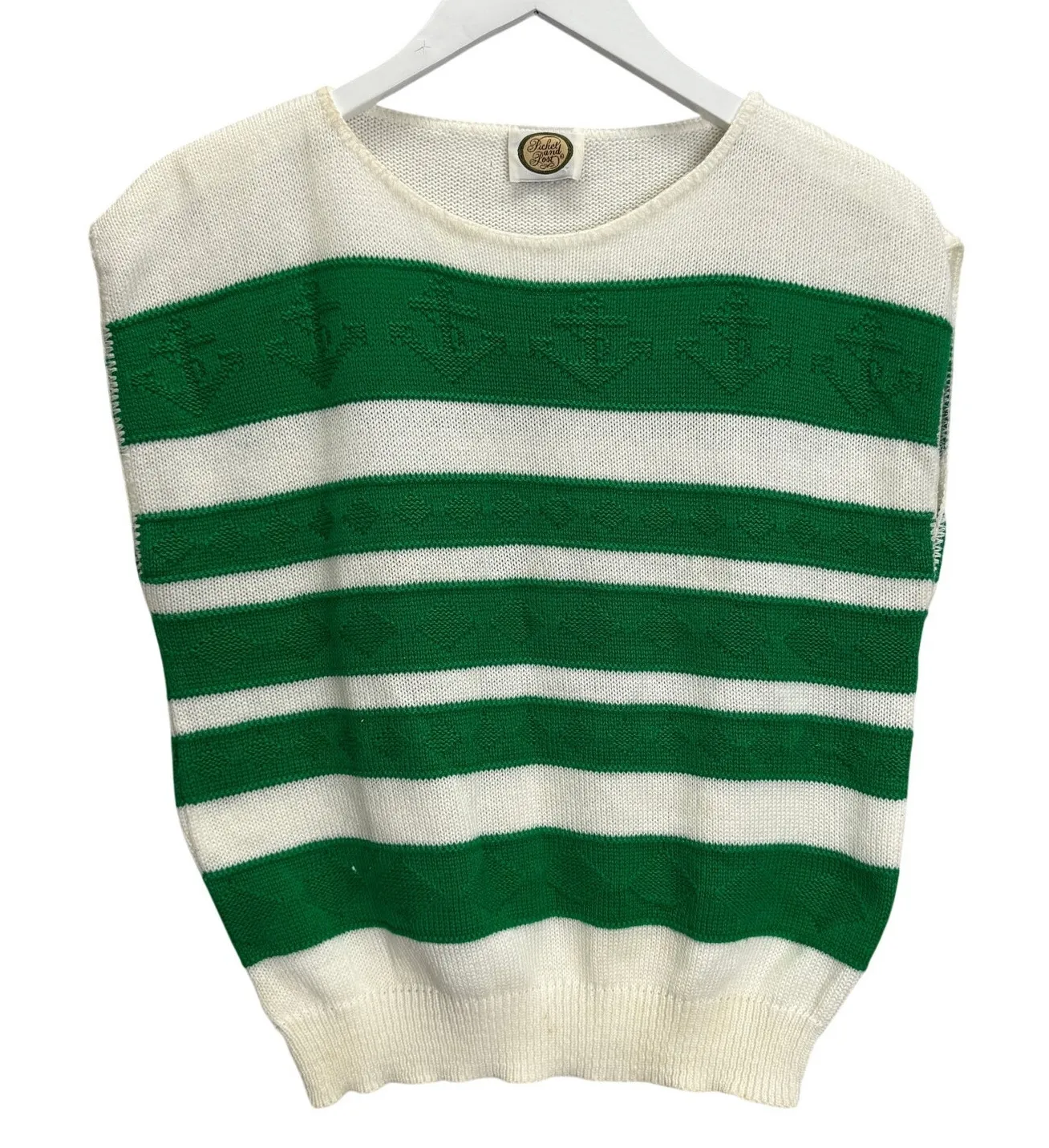 Vintage Picket and Post Striped Cap Sleeve Sweater Size M White Green Anchors Size M - $27 - From Alexis