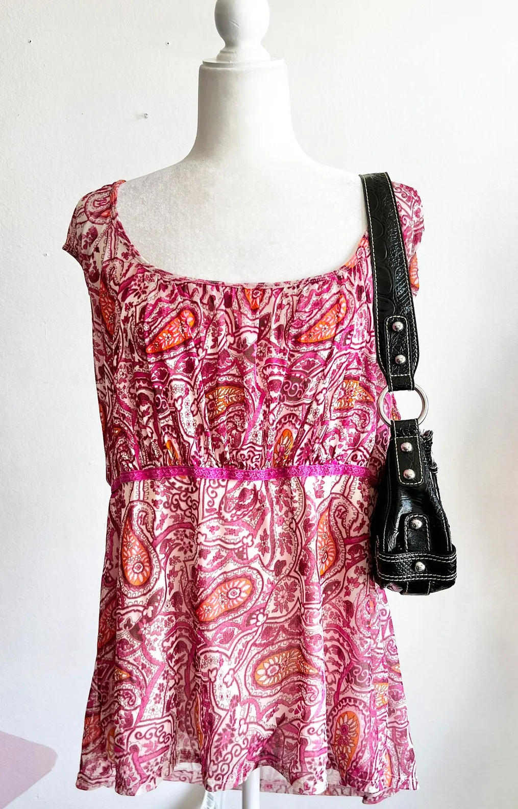 Vintage Pink‎ Paisley Babydoll Top, Y2K Boho Cottagecore Festival Retro 3X Pink - $12 - From Kenia