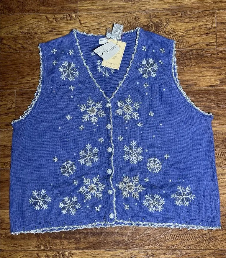Vintage Plus Size Blue Snowflake Vest 22/24W Sequins Beads Winter Holiday NEW - $35 New With Tags - From Cheryl