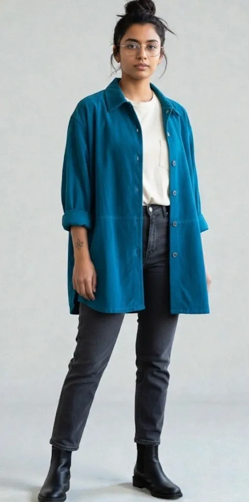 ✧ Brand: R&K Originals ✧ Size: Women's 14 (L/XL) ✧ Color: Teal ✧ Material: 97% Polyester, 3% Spandex (faux suede feel) ✧ Style: Button-up blazer/jacket with collared neckline ✧ Details: Long sleeves, side slits, soft stretch faux suede, midweight fabric ✧ Condition: Gently pre-owned, no visible flaws, well-kept vintage vintage, retro, minimalism, quietluxury, classic, corecore, preppy, officewear, elegant, academia, 90s, y2k, statement, cottagecore, teal, fallfashion, winter, layering, dopamine, fauxsuede, timeless ✰ Please review all photos for condition & measurements ✰ Measurements approx./in inches (measure your fave garment for best reference) ✰ Ships QUICK on same/next business day ✰ Items stored in sealed polybag/smoke & pet-free environment ✰ AI-generated model images are for reference only and may differ from the actual item ✰ 1880